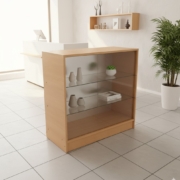 - Mostrador vitrina tapa laminadaMOSTRADOR VITRINA MEDIDAS DEL VITRINA: LARGO 90 CM ALTO 90 CM PROFUNDIDAD: 43 CM DESCRIPCION: TAPA de melamina, FRENTE Y DOS ESTANTES DE VIDRIO ATRAS QUEDA ABIERTO MELAMINA DE 18MM. COLORES: BLANCO, HAYA O NEGRO